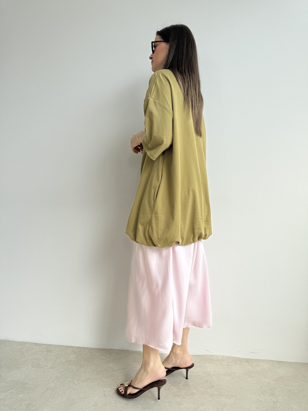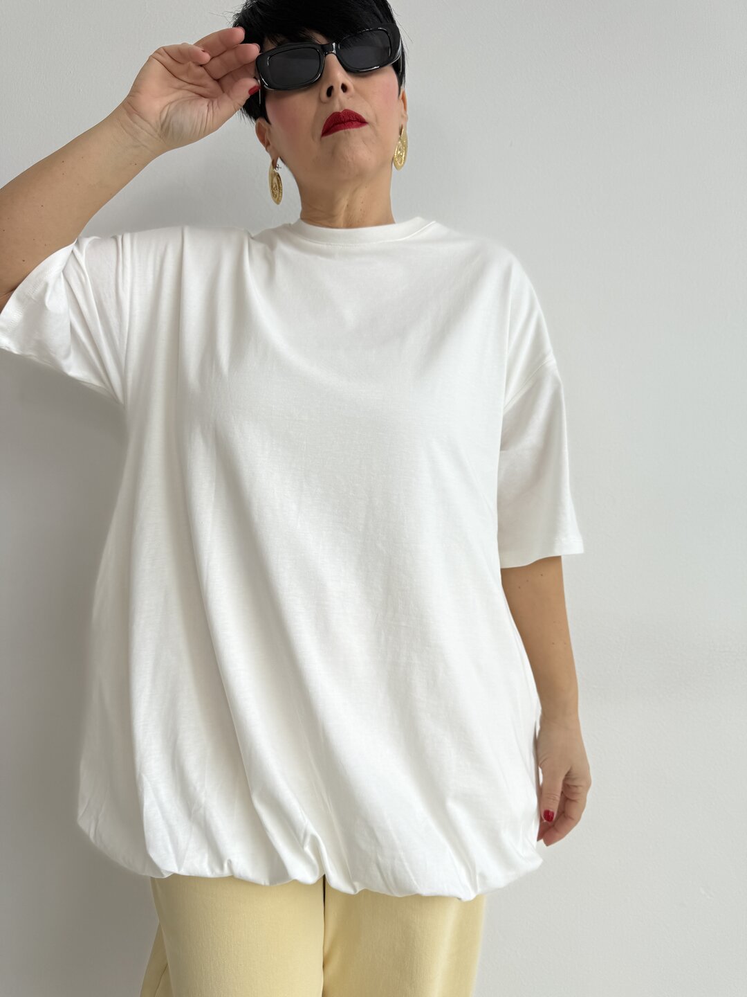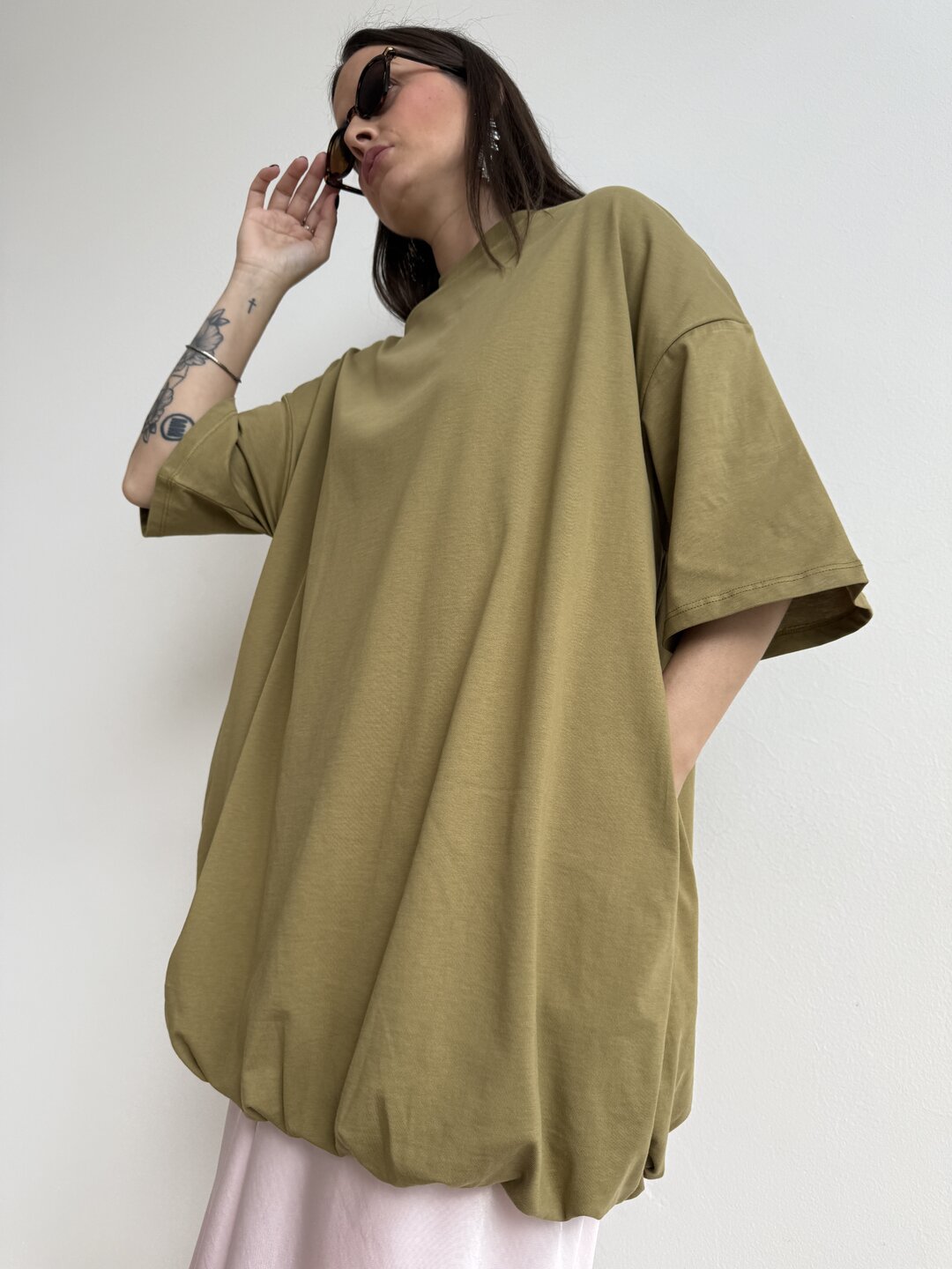 Modello che può fungere anche da abitino oversize girocollo in jersey cotone.